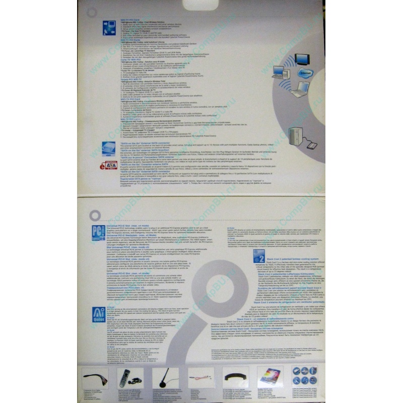 Комплектация: Руководство пользователя, UltraDMA кабель,IDE кабель,FDD кабель, COM кабель, USB/Game модуль, I/O заглушка, SATA кабель, 1x 1394 модуль