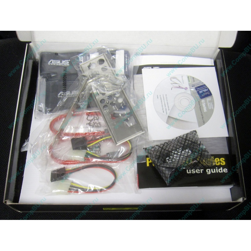 Комплектация: 2 кабеля Serial ATA, 2 кабеля 2-портовых питания SATA, 1модуль COM порт, 2 модуля 2-портовых USB2.0, 2 кабеля UltraDMA 133/100/66, 1 кабель IDE, 1 кабель FDD