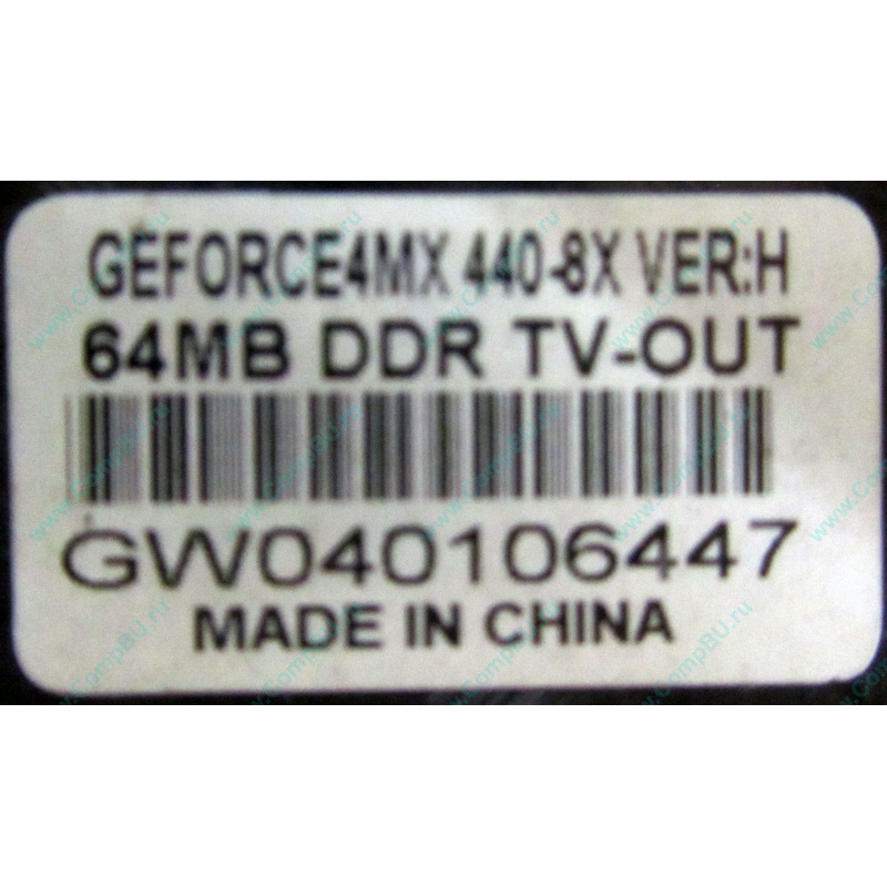 Видеокарта 64Mb nVidia GeForce4 MX440 AGP 8x